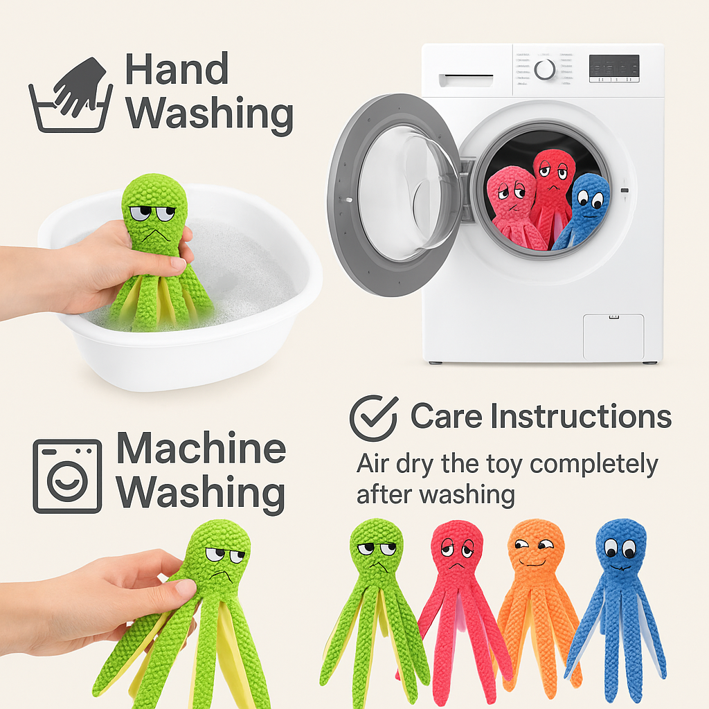 Pet toys require regular cleaning due to frequent use and constant exposure to saliva and dirt. Most are made of polyester fiber, with some containing plush fabric. Plush toys should be hand-washed in warm water using pet-specific detergent and thoroughly air-dried to prevent mold growth. Rubber or silicone toys can be cleaned with soapy water and, if suitable, placed on the top rack of a dishwasher. Inspect toys for damage after each wash. Replace immediately if stuffing is exposed or edges become sharp to ensure pet safety.
