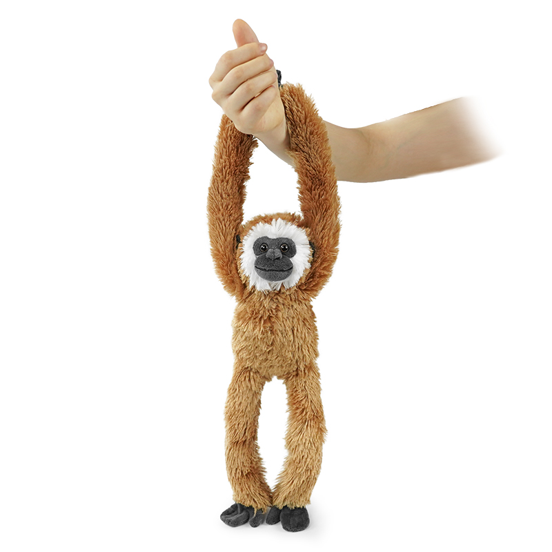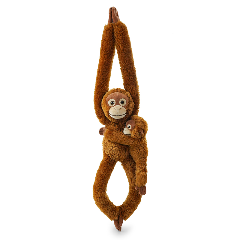 The collection features various animal designs including gibbons, sloths, lemurs, and chimpanzees, each with distinctive expressions and adorable proportions. All plushies feature dual-arm designs with hook-and-loop fasteners, allowing easy hanging on arms, furniture, cribs, or backpacks for added fun.