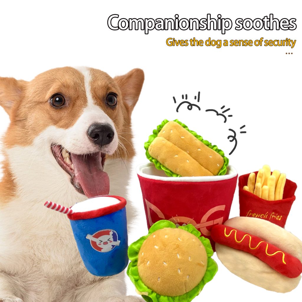 Bring your pet a “delicious” fun experience! Inspired by human fast food favorites, this burger toy set includes plush versions of burgers, hot dogs, fries, and soda cups—all featuring vibrant colors and realistic designs.