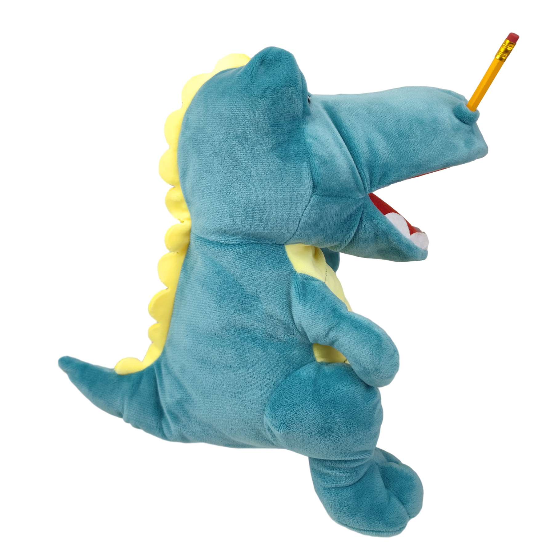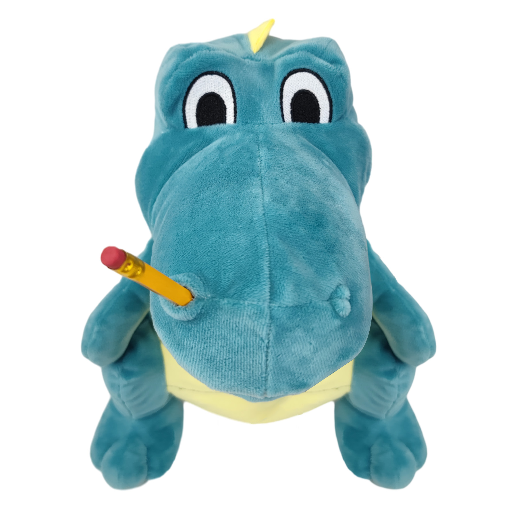 Vibrant blue-green scales, a yellow belly, and playful pencil “accessories” make Dinosaur Jeffy a one-of-a-kind prehistoric character.